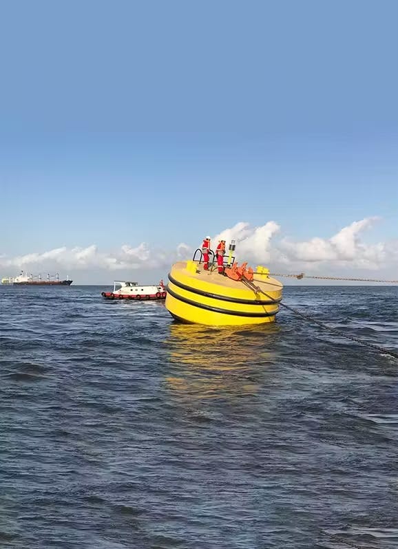 Apoio de barco e equipe para troca/giro de boias de defensas de navios em operação ship- to-ship